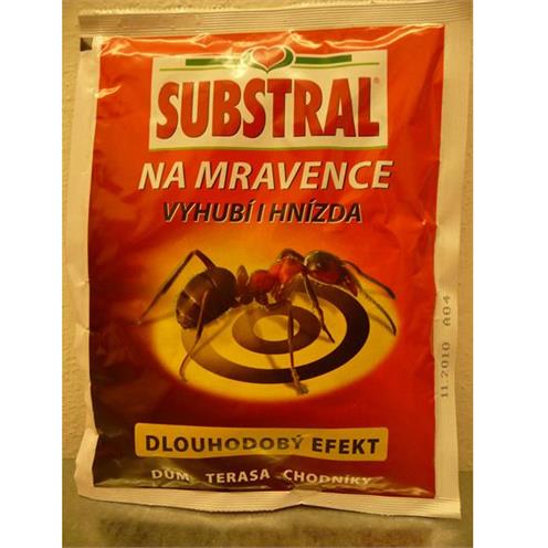 Mravence v zahradě nikdo nevítá, spíš nás naplňují úzkostí. Když však využijeme některé poznatky z jejich života, můžeme je pomocí vhodných přípravků vyhubit. Většina mravenců potřebuje pro normální fungování kolonie teplo, kolem stupňů, proto jsou jejich hnízda obvykle umístěna na bezpečném místě pod kameny, u podezdívky, u potrubí apod. Substral na mravence granulát na hubení mravenců. Je určen k zásypu nebo zalití mravenčích stezek v domě, na terasách nebo balkónech nebo na chodnících kolem domu.