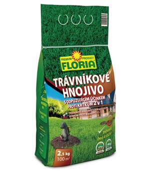 Aromatické látky, ktoré hnojivo obsahuje, odpudzujú krtkov. Toto hnojivo je vhodné ke hnojení všech druhů trávníků – sportovních i okrasných. Kapalné hnojivo pro pokojové rostliny s účinkem proti smutnicím Kapalné hnojivo pro palmy a zelené rostliny Listová výživa pro palmy a zelené rostliny Listová výživa pro orchideje Okyselovač půdy a kapalné hnojivo pro azalky a rododendron. Floria - trávníkové hnojivo s odpuzujícím účinkem na krtky je výrobek, který obsahuje všechny základní prvky důležité pro dobrou kvalitu trávníku, jako je dusík, fosfor a draslík.